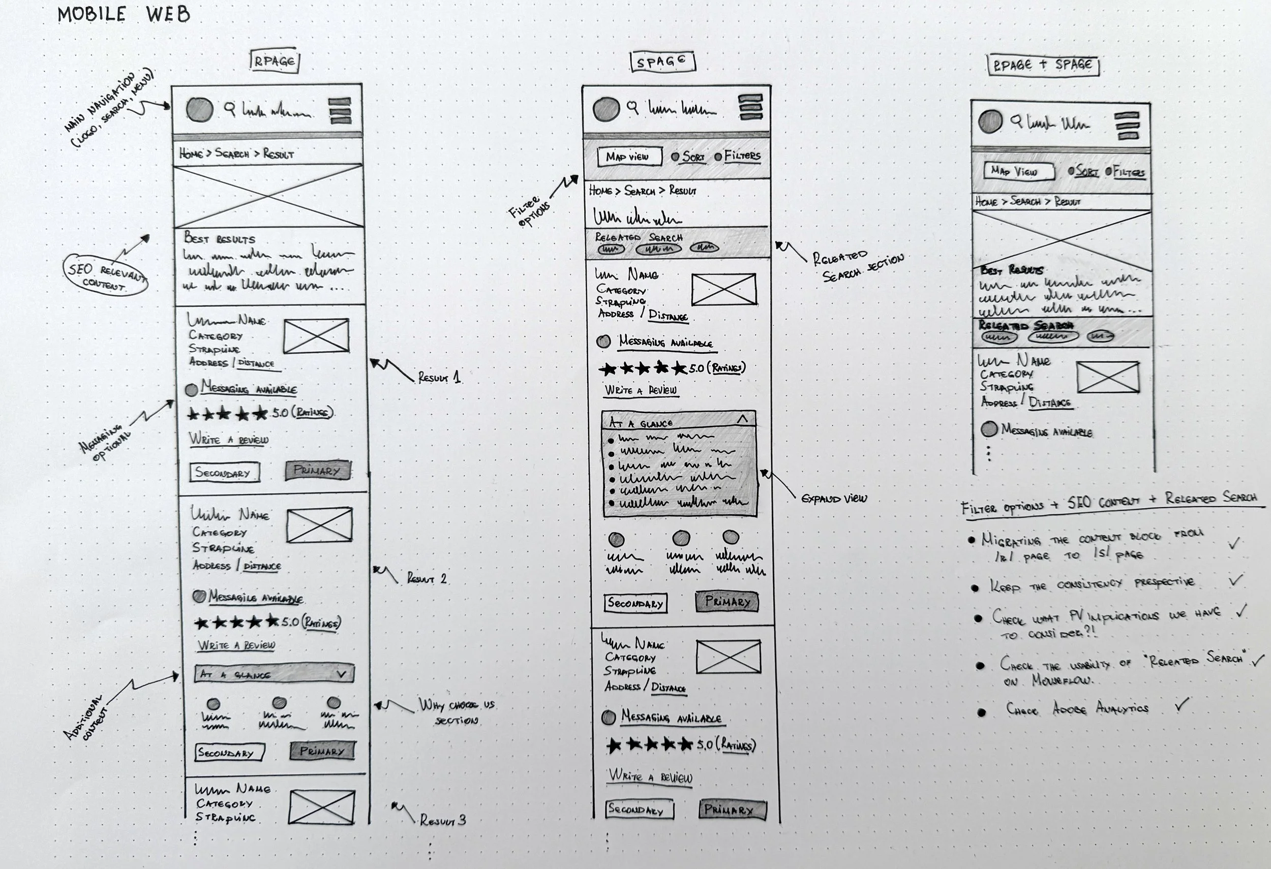 The purpose of this test is to establish if a ‘reviews summary’, with sorting and filtering features provides value to the business listing for a user. As with all research it’s essential to define and establish the users and business goals. From meetings with the stakeholders and planning design sprints including the dev team as well, we were able to gain valuable insights through our Adobe Analytics and Mouseflow tools. Based on this data, we were able to map out our assumptions and considerations.